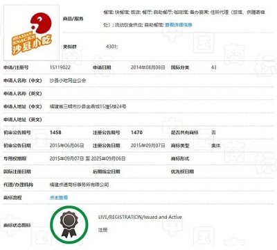 典型的集體商標,那非“沙縣小吃”不可。沙縣小吃同業(yè)公會1998年注冊了“沙縣小吃”服務(wù)商標,2006年又注冊了“沙縣小吃同業(yè)公會及圖形”集體商標,審定服務(wù)項目為餐館、飯館、流動飲食供給、咖啡館、雞尾酒會服務(wù)等。