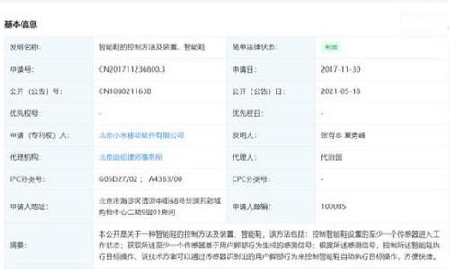 北京小米移動(dòng)軟件有限公司被授權(quán)發(fā)明專利“智能鞋的控制方法及裝置、智能鞋”,專利公開號(hào)為CN108021163B,企查查專利摘要顯示,本公開是關(guān)于一種智能鞋的控制方法及裝置、智能鞋,該方法包括:控制智能鞋設(shè)置的至少一個(gè)傳感器進(jìn)入工作狀態(tài);獲取所述至少一個(gè)傳感器基于用戶腳部行為生成的感測(cè)信號(hào);根據(jù)所述感測(cè)信號(hào),控制所述智能鞋執(zhí)行目標(biāo)操作。該技術(shù)方案可以通過傳感器識(shí)別出的用戶腳部行為來控制智能鞋自動(dòng)執(zhí)行目標(biāo)操作,方便快捷。