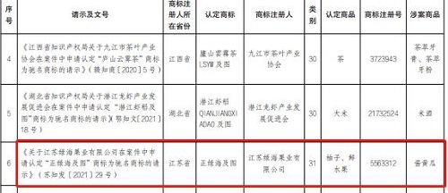 昨天,從崇川區(qū)市場(chǎng)監(jiān)管局傳來(lái)消息,國(guó)家知識(shí)產(chǎn)權(quán)局公布2021年予以馳名商標(biāo)擴(kuò)大保護(hù)的注冊(cè)商標(biāo)名單,江蘇綠海果業(yè)有限公司的“正綠海及圖”注冊(cè)商標(biāo)被批復(fù)認(rèn)定為馳名商標(biāo)。這是江蘇省2020年以來(lái)首件且唯一被批復(fù)認(rèn)定的馳名商標(biāo),也是我市第71件中國(guó)馳名商標(biāo)。