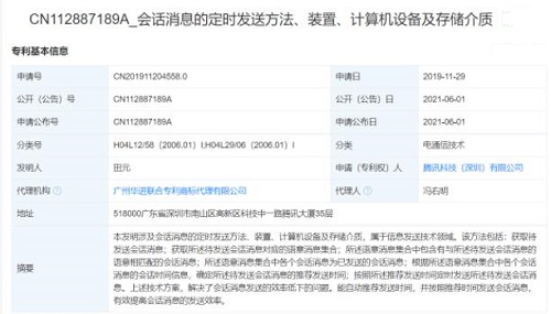 近日,騰訊科技(深圳)有限公司公開“會(huì)話消息的定時(shí)發(fā)送方法、裝置、計(jì)算機(jī)設(shè)備及存儲(chǔ)介質(zhì)”發(fā)明專利,公開號(hào)CN112887189A,申請(qǐng)日期為2019年11月。