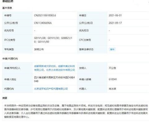 近日,“實(shí)現(xiàn)移動設(shè)備地震監(jiān)測的方法及設(shè)備”發(fā)明專利被公開,所屬北京小米移動軟件有限公司,公開號為CN113406696A。