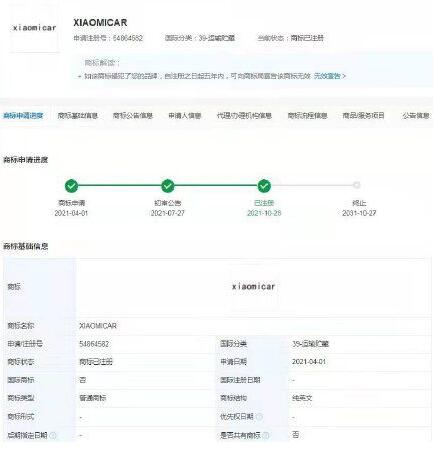 今年9月小米老總雷軍宣布進(jìn)軍新能源汽車行業(yè),小米汽車注冊資金為100億人民幣,雷軍親自出人法人代表。今日小米汽車多個(gè)商標(biāo)獲得批準(zhǔn),這些商標(biāo)的申請日期大多為今年4月。