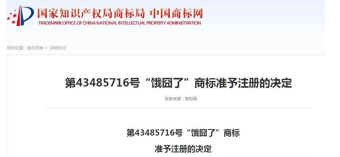 因此,根據(jù)《商標(biāo)法》第35條規(guī)定,國(guó)家知識(shí)產(chǎn)權(quán)局決定第43485716號(hào)“餓囧了”商標(biāo)準(zhǔn)予注冊(cè)。