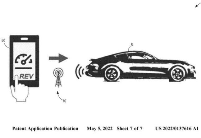 根據(jù)專利描述,這套系統(tǒng)能夠在一定時間內(nèi)將發(fā)動機轉(zhuǎn)速提高到特定的范圍,甚至還可以打開排氣閥門。此外福特稱這項技術(shù)不僅僅可以應(yīng)用在燃油車上,在電動汽車上同樣可以配置。比如,可以遠程控制電動車的揚聲器播放發(fā)動機的聲音。