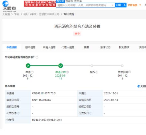 天眼查App顯示,釘釘(中國)信息技術(shù)有限公司“通訊消息的聚合方法及裝置”專利公布。