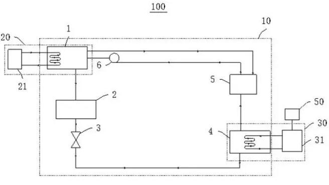 摘要顯示,本專利中車輛熱管理系統(tǒng)包括吸收式制冷系統(tǒng);第一熱管理部件用于調(diào)節(jié)發(fā)動(dòng)機(jī)和/或電機(jī)的溫度,與吸收式制冷系統(tǒng)的發(fā)生器連接;第二熱管理部件用于調(diào)節(jié)動(dòng)力電池的溫度,與吸收式制冷系統(tǒng)的蒸發(fā)器連接。第一熱管理部件為第一散熱盤管,該散熱盤管用于與發(fā)動(dòng)機(jī)和/或電機(jī)接觸換熱。本申請(qǐng)實(shí)施例的車輛熱管理系統(tǒng)合理利用發(fā)動(dòng)機(jī)和/或電機(jī)的熱量調(diào)節(jié)動(dòng)力電池的溫度,提高動(dòng)力電池的安全性能,提升車輛的續(xù)航里程。
