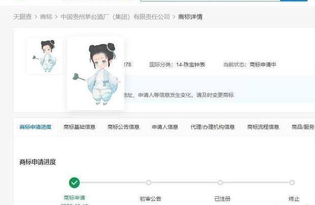 從天眼查了解到,中國貴州茅臺酒廠(集團)有限責(zé)任公司申請注冊多個圖形商標(biāo)。據(jù)了解,上述圖形商標(biāo)為古風(fēng)漫畫人物和疑似靈獸形象,國際分類涉及酒類、廣告銷售、運輸工具等,當(dāng)前商標(biāo)狀態(tài)均為“注冊申請中”。