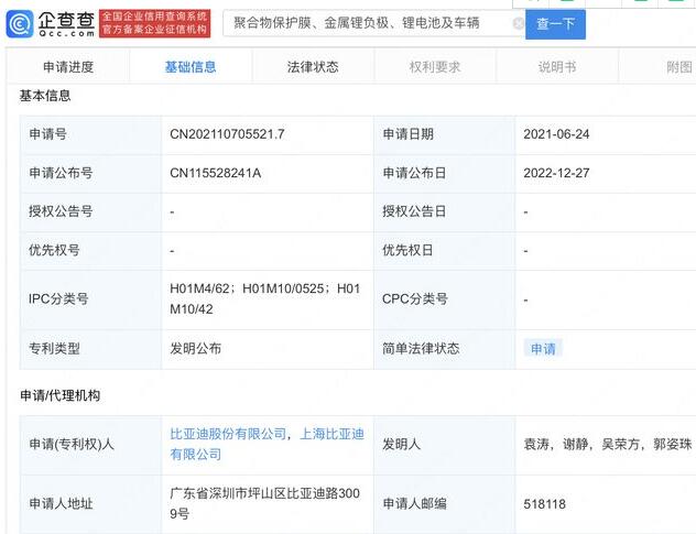 企查查APP顯示,近日,比亞迪(002594)、上海比亞迪有限公司“聚合物保護膜、金屬鋰負極、鋰電池及車輛”專利公布。企查查專利摘要顯示 ,所述聚合物保護膜由聚合物A和聚合物B的組合物組成,其中,聚合物B為導(dǎo)電聚合物,聚合物A的結(jié)構(gòu)式如下:或本申請的聚合物保護膜中聚合物A能夠有效傳導(dǎo)鋰離子,促進鋰離子傳輸,抑制鋰枝晶的形成,同時還有能夠改善聚合物保護膜的柔性,有利于適應(yīng)鋰金屬的膨脹;聚合物B有利于鋰離子分布均勻,進而提高電池的安全性能和循環(huán)性能。